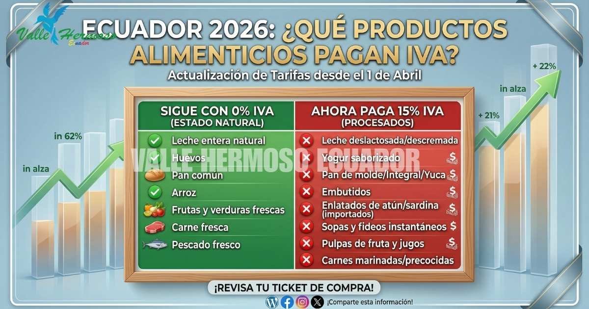 Desde este 1 de abril de 2026, ir al supermercado en Ecuador se ha vuelto una experiencia más costosa. El Servicio de Rentas Internas (SRI) emitió una circular definitiva que aclara —y en la práctica, expande— la lista de productos alimenticios que dejan de beneficiarse de la tarifa 0% para gravar el 15% de IVA. Aunque el Gobierno sostiene que los productos "en estado natural" no suben, la realidad en las perchas es distinta: casi cualquier alimento con un mínimo proceso industrial ahora tributa.